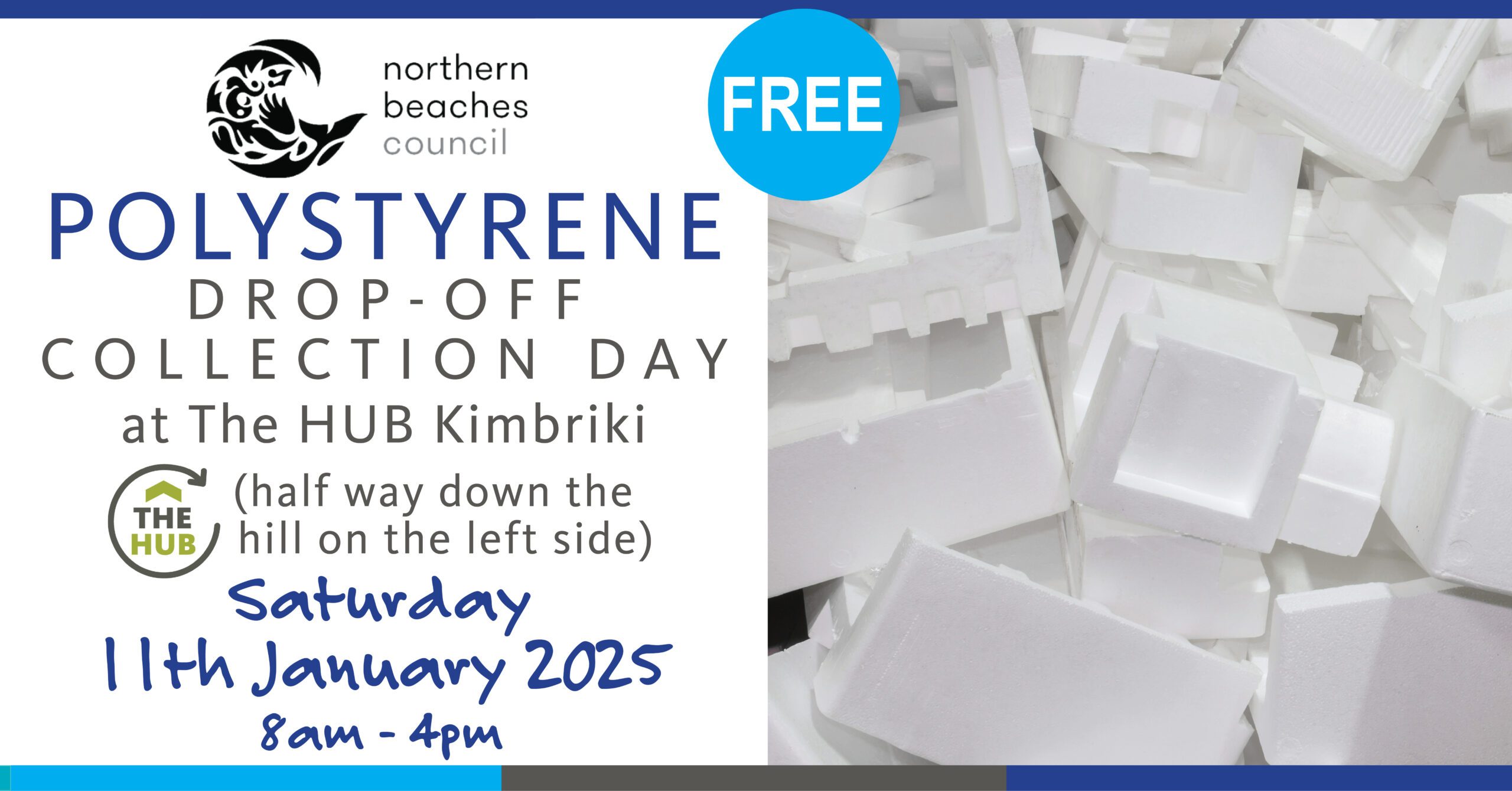 Northern Beaches Council 𝗣𝗢𝗟𝗬𝗦𝗧𝗬𝗥𝗘𝗡𝗘 𝗗𝗥𝗢𝗣-𝗢𝗙𝗙 𝗖𝗢𝗟𝗟𝗘𝗖𝗧𝗜𝗢𝗡 𝗗𝗔𝗬 - FREE at The HUB Kimbriki (1 Kimbriki Rd Ingleside, halfway down the…