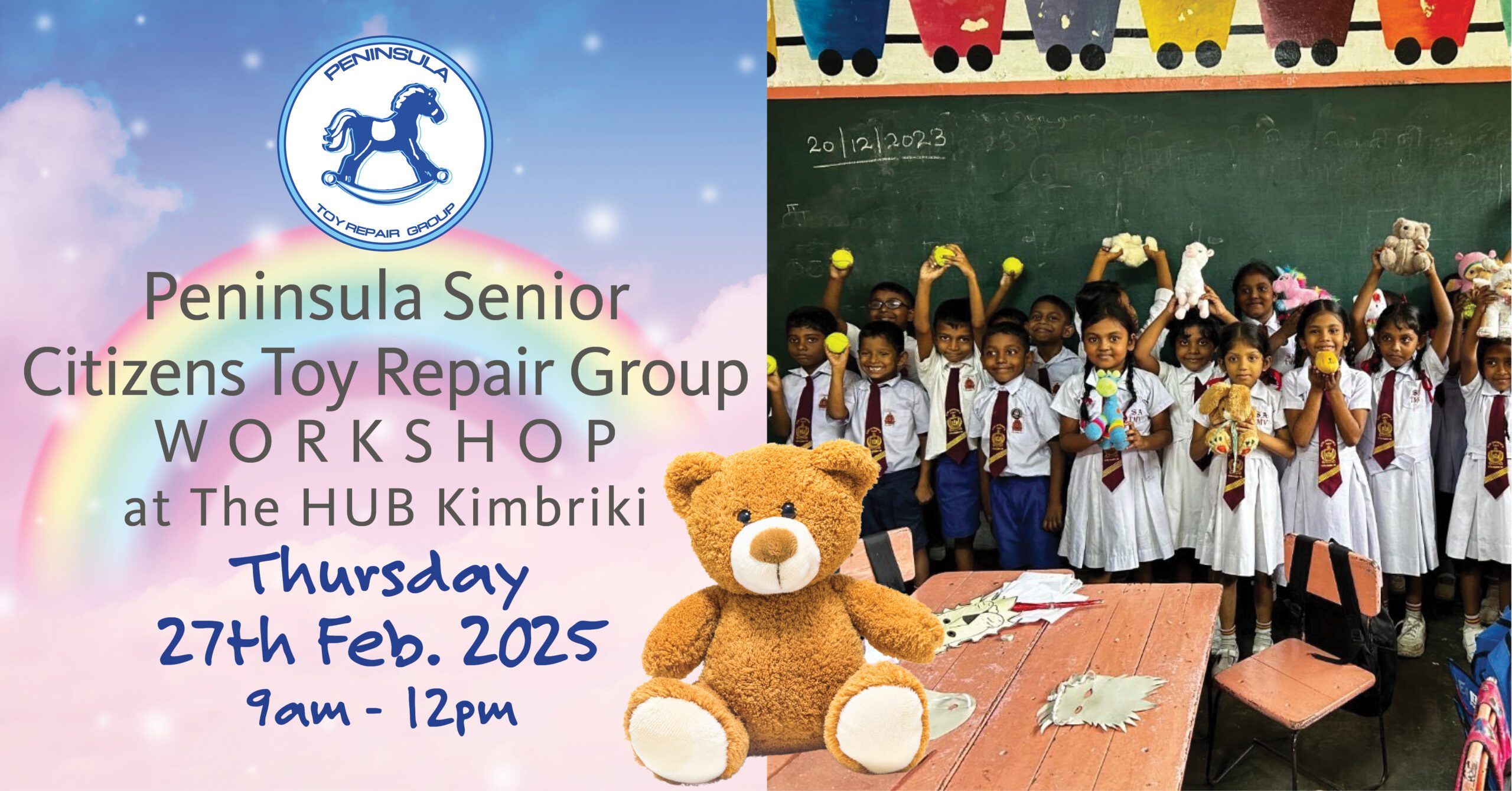 Drop your preloved toys direct to Peninsula Toy Repair group between 9am and 12pm Thursdays!