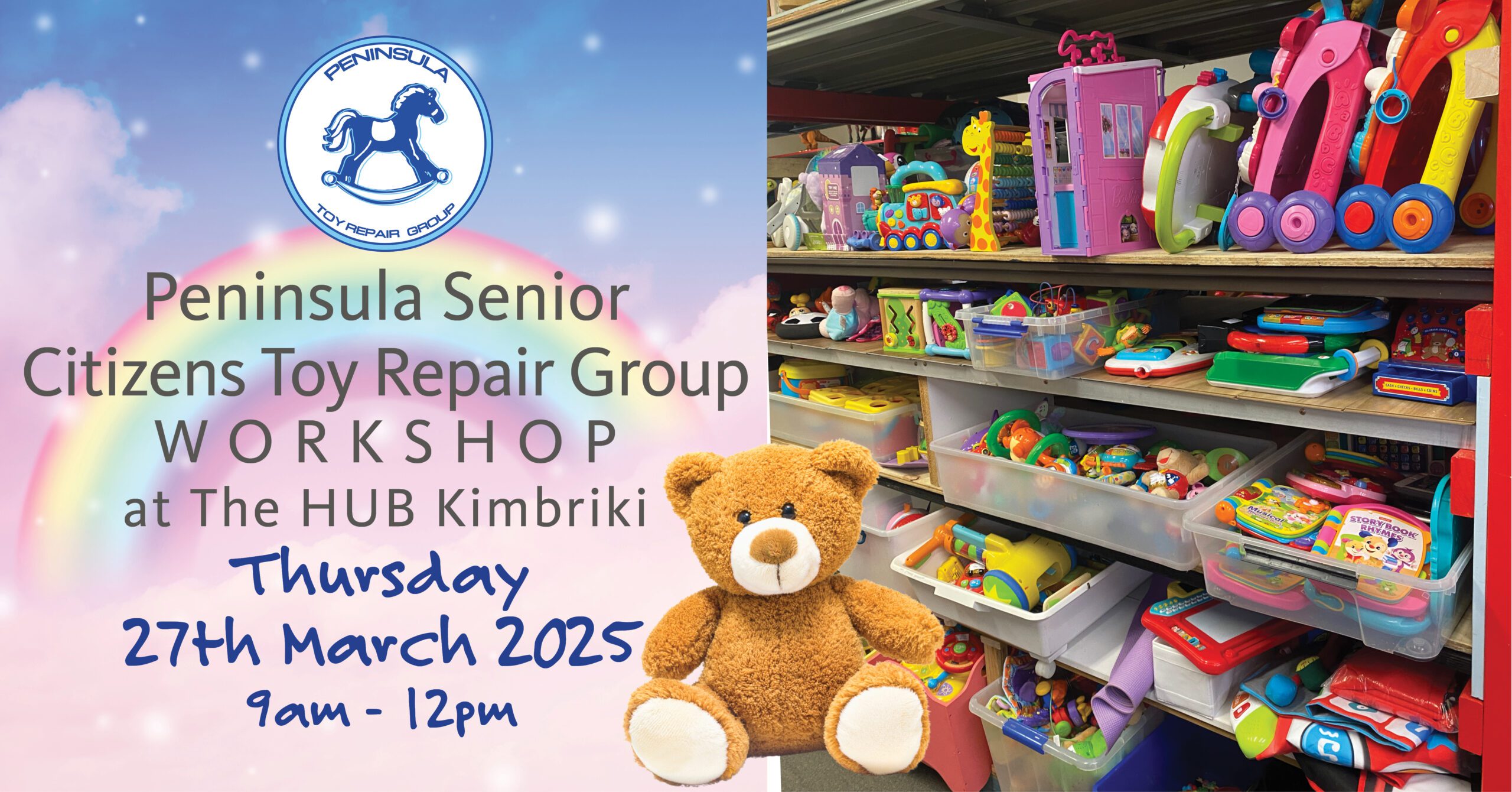 The HUB Kimbriki 1 Kimbriki Road (half way down the hill on the left side), Ingleside, New South Wales, AustraliaDrop your preloved toys direct to Peninsula Toy Repair group between 9am and 12pm Thursdays!