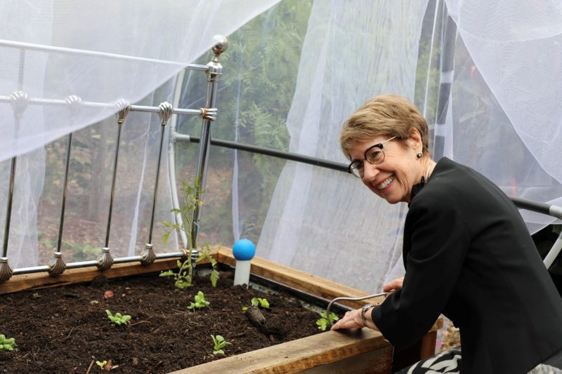 Pictured: Her Excellency the Honourable Margaret Beazley AC QC, Governor of New South Wales planting seedlings in Kimbriki Wicking Garden Bed at Government House.