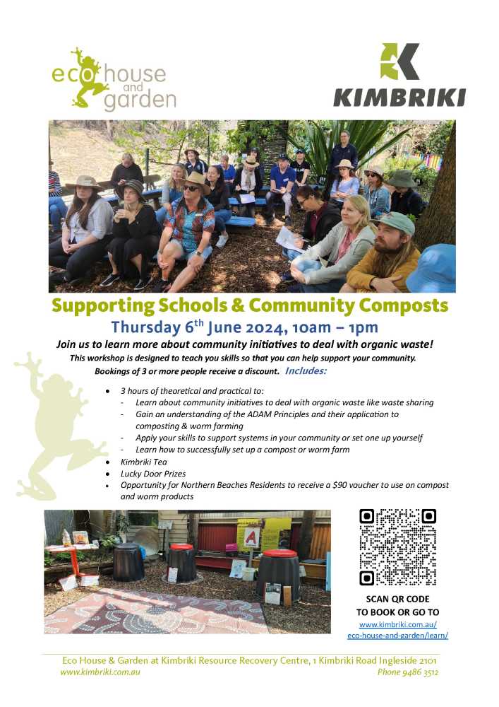 While Kimbriki does not receive food waste, the team at the Eco House & Garden are passionate about educating our community on how they can remove organic food waste from the waste stream through composting and worm farms.