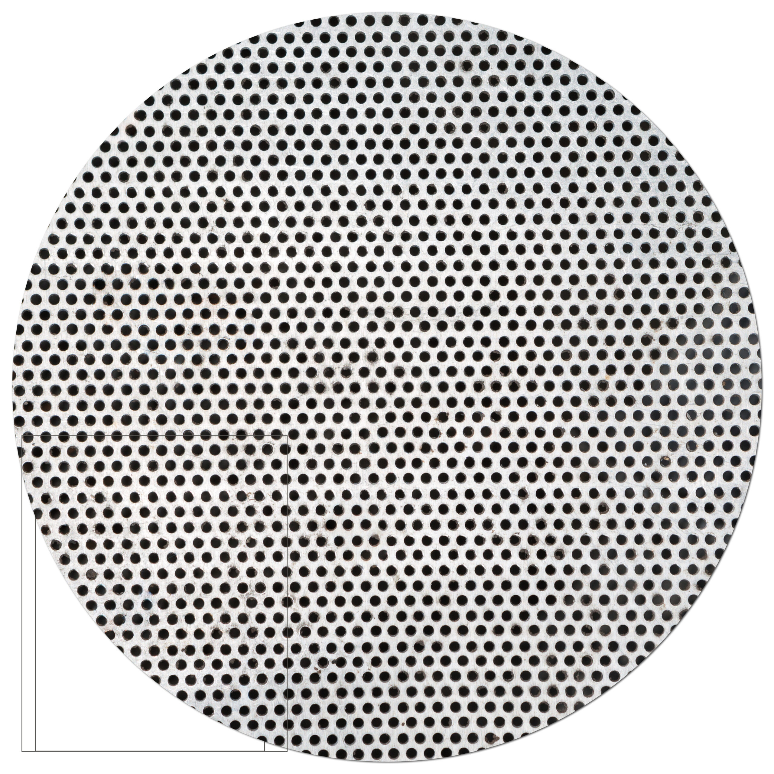This circular Rodent Control Sheet of perforated aluminium sheet metal is made locally by Letchford Engineering. A 220 litre Geyde Compost Bin fits perfectly on it to offer a rodent barrier base. We think this strong perforated metal sheeting is the best solution for rodent control.