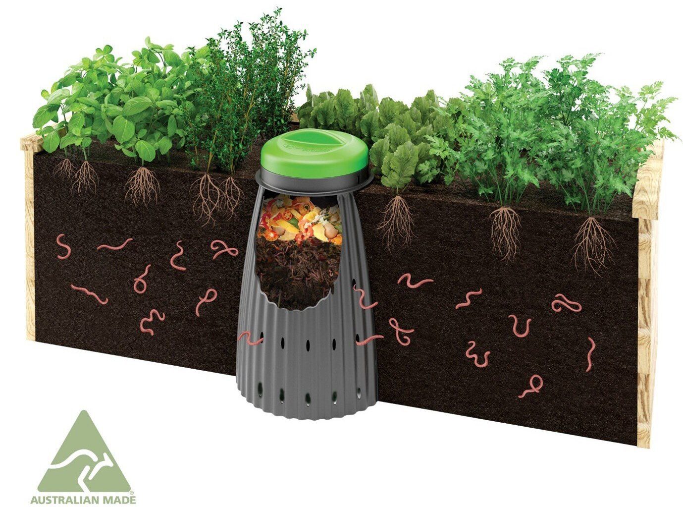 Made from 100% recycled plastic, this in-ground worm farm works hard to break down your food scraps while also feeding the surrounding garden soil with nutrients and beneficial microbes. Ideal for raised garden beds, it has a locking lid. Designed to be buried deep enough that rodents cannot enter. This system is the most maintenance free system of them all.